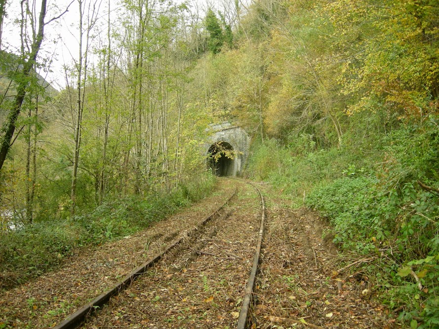 Images : à gauche, Courbe entre les PN 60 et 59, avant la rénovation. Ce passage à niveau n'était pas encore équipé de barrières à la fermeture de la ligne Oloron - Bedous en 1985, tout comme presque tous les autres passages à niveau, dont très peu étaient équipés de barrières automatiques, comme le PN 58 plus au nord. A droite, même endroit,le 7 mai 2016. Le poteau qui supporte le signal de la première photo a été enlevé, et en attendant la pose très prochaine des barrières du PN 59 (celles-ci sont posés sur les cotés de celui-ci), des panneaux indiquent la présence du passage à niveau à 200 m. Celui de gauche devrait être dans l'autre sens.